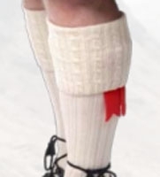 These Ivory, black and charcoal coloured hose are a merino wool blend, made in Scotland to accomodate larger calves. We carry size large for a 11-13 shoe and XL for 13 1/2-14 1/2 shoe and calves up to 22".